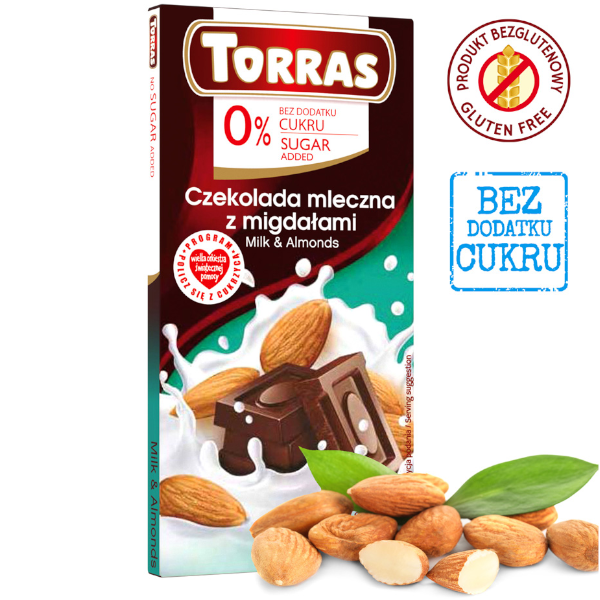 ProducenciCzekolada mleczna z migdałami bez dodatku cukru i bez glutenu 75g TORRAS