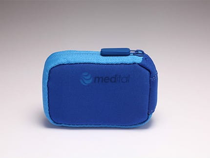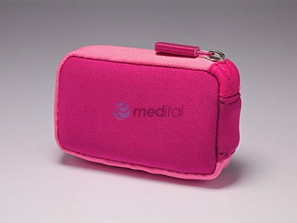 Etui z neoprenu - tworzywa ściśle dopasowującego się do kształtu pompy insulinowej. Etui zamykane jest na zamek błyskawiczny. Można je mocować poziomo, za pomocą paska (pasek nie jest na wyposażeniu etui) lub za pomocą zaczepu.