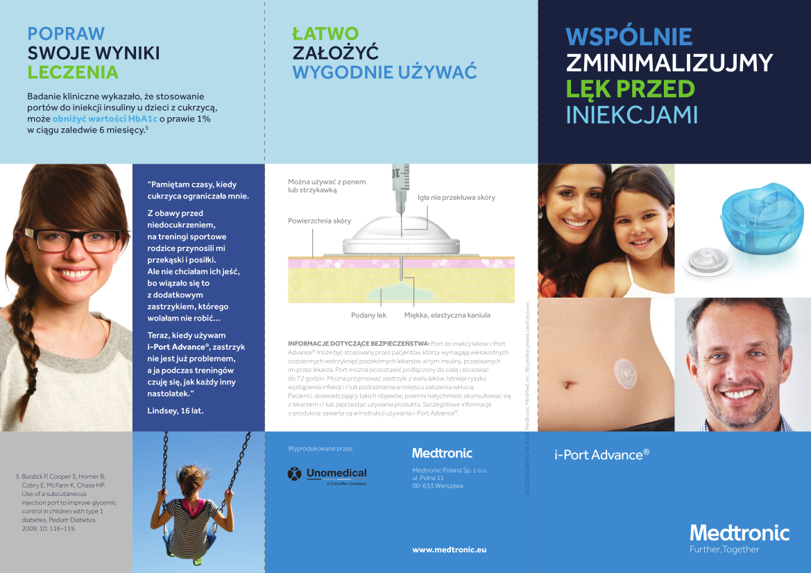 Uwaga! Istnieje ryzyko wystąpienia infekcji i / lub podrażnienia w miejscu założenia wkłucia. Pacjenci, doświadczający takich objawów, powinni natychmiast skonsultować się z lekarzem i / lub zaprzestać używania produktu. Szczegółowe informacje o produkcie zawarte są w Instrukcji używania i-Port Advance.